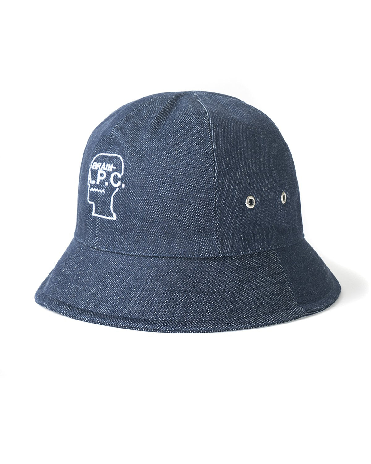 Japanese denim. Six panels. Classic shape. Four-hole lacing. Embroidered eyelets. Reinforced headband. Cotton lining. Brain Dead interaction: revisited 'Brain-A.P.C.' logo embroidered in contrasting Jacquard.material: 100% cotton