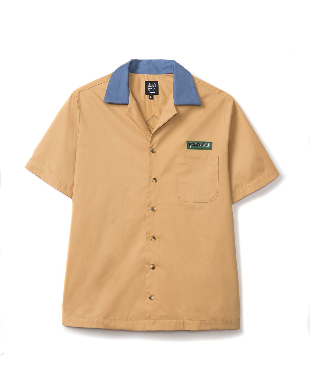 • Load image into Gallery viewer, Bowling Shirt - Yellow w/ Slate Blue